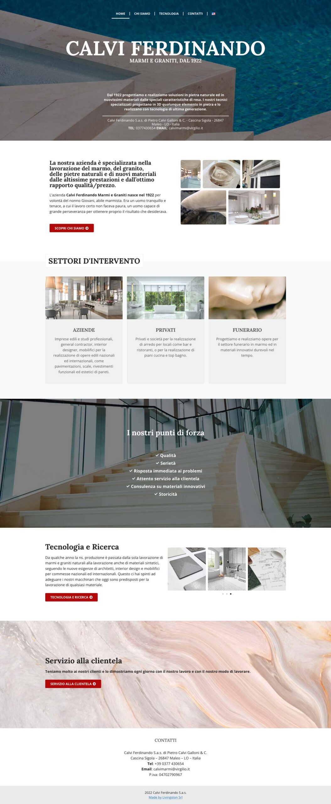 Sviluppo sito internet per Calvi Marmi, azienda attiva dal 1922 e specializzata nella lavorazione del marmo, del granito, delle pietre naturali e di nuovi materiali dalle altissime prestazioni e dall’ottimo rapporto qualità/prezzo.