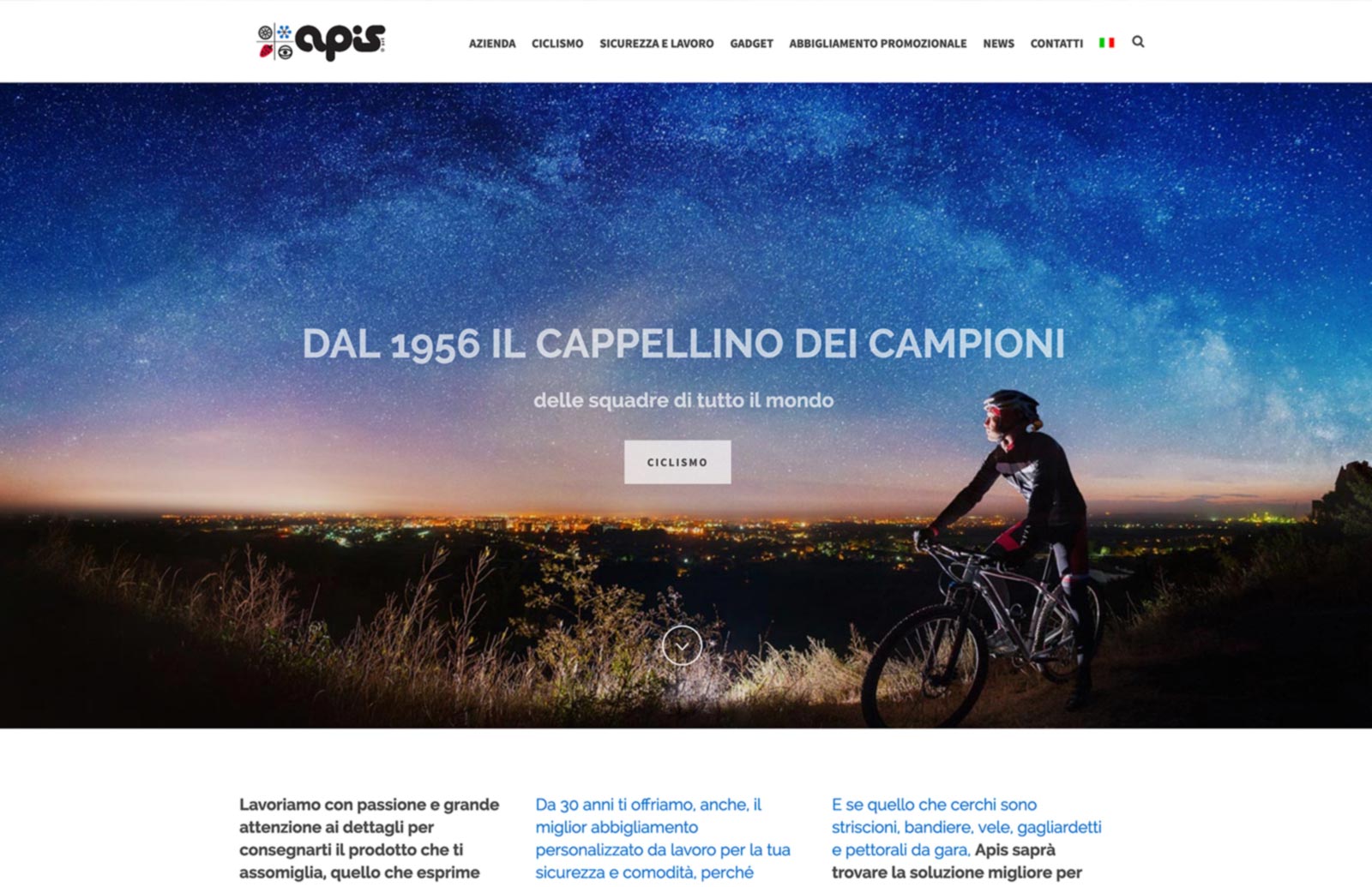 Per Apis abbiamo realizzato, anche, un servizio fotografico per le sezioni interne, abbiamo rielaborato i contenuti e rifatto il montaggio del video che compare in home. Al sito web si affianca un piano di promozione per il settore ciclo e per il settore dell’abbigliamento da lavoro che prevede la gestione della pagina Facebook, l’editing dei testi degli articoli del blog del sito, e gli annunci in Google Adwords.
