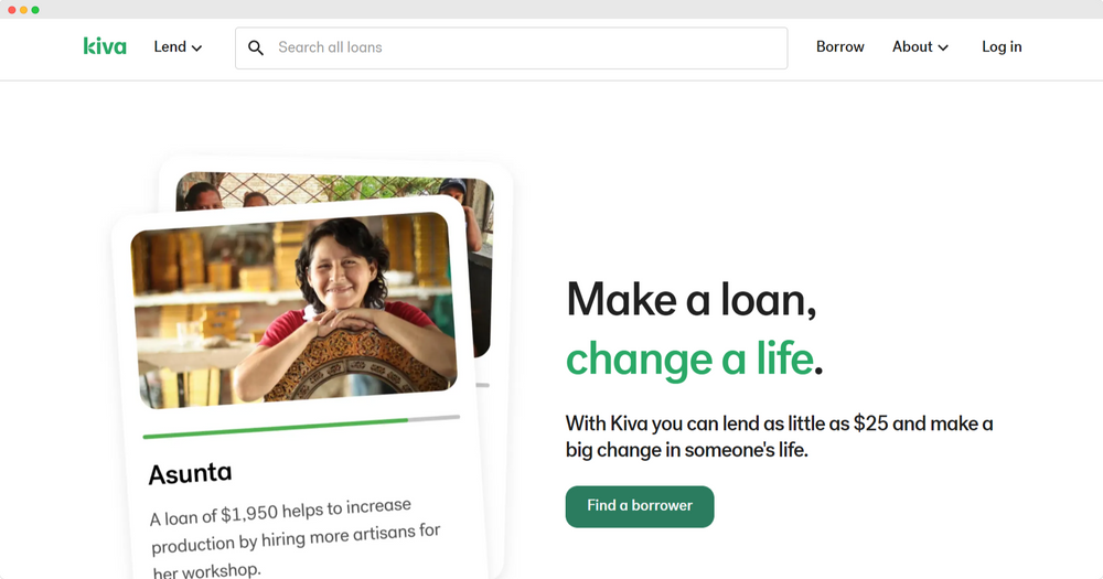 Un esempio di chiamata all’azione all’interno di un sito web, Kiva, organizzazione che si occupa di micro-credito. Prima della chiamata all’azione vera e propria (trova un mutuatario, Find a borrower, in inglese), c’è una prima chiamata all’azione che fornisce le reali motivazioni per agire: Male a loan, change a life: partecipa alla creazione di un (micro) prestito, e cambia una vita. Indubbiamente, “qualcosa” si più di un semplice “clicca qui”.