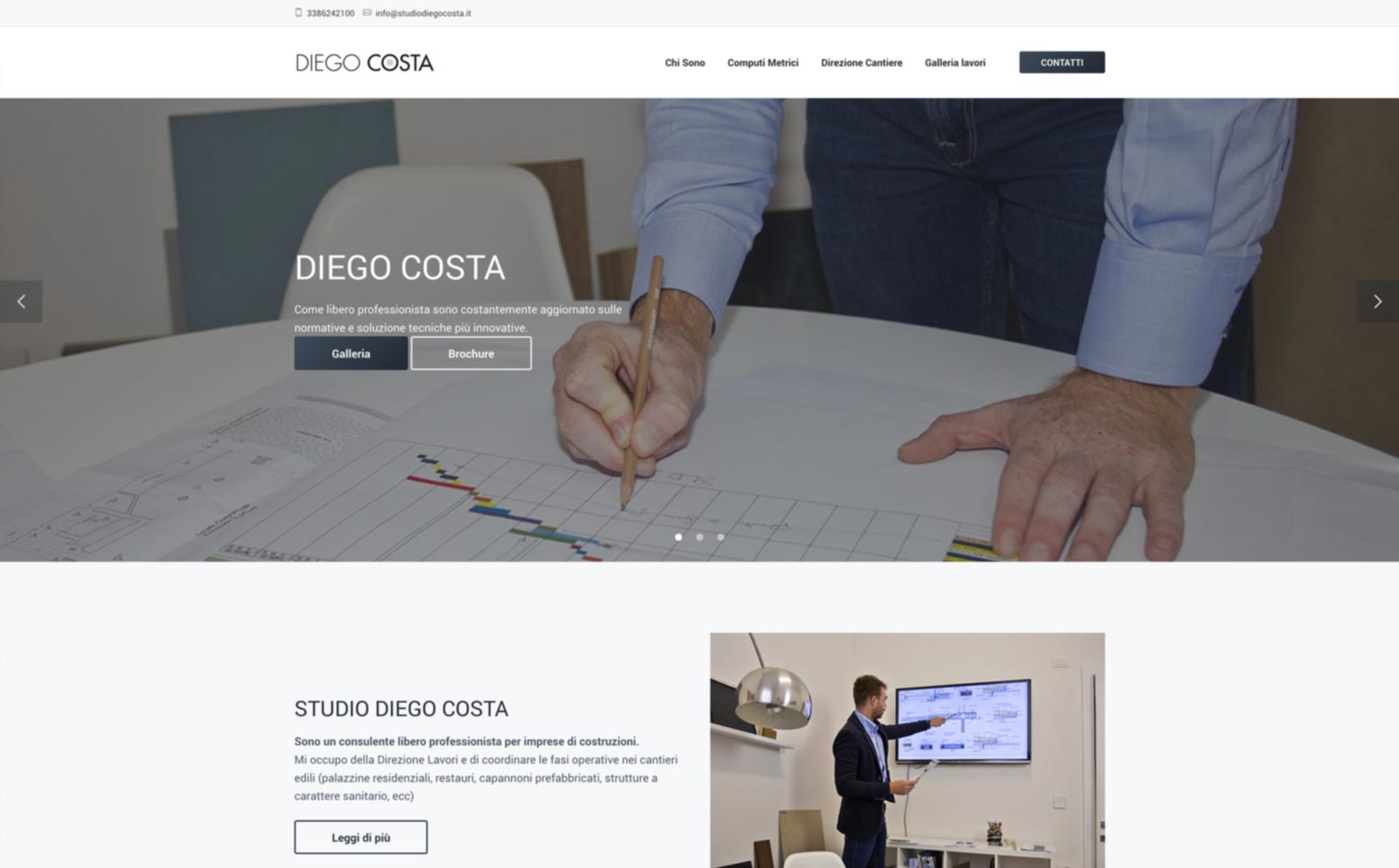 Diego Costa è un consulente libero professionista per imprese di costruzioni. Si occupa della Direzione Lavori e di coordinare le fasi operative nei cantieri edili (palazzine residenziali, restauri, capannoni prefabbricati, strutture a carattere sanitario, ecc).