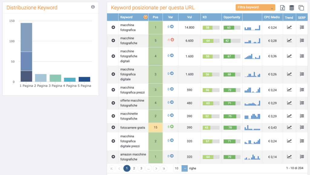 - I dati sui volumi di ricerca, sono più precisi in Google ADS, che in SEO Zoom, per cui li analizzeremo più avanti con “lo strumento parole chiave di Google”.
